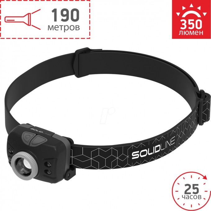 LED Lenser Solidline SH5 (502205) – одна из самых легких моделей налобных фонарей: весит 86 граммов. Он удобен и легок в ношении, при этом достаточно ярок и надежен. У него два светодиода: белый и красный, а режимов работы – 5. Максимальный световой поток – 350 Лм. Световой луч можно не только переключать с широкого на узкий, но и направлять в определенное место, благодаря подвижной конструкции головы фонаря. Угол наклона составляет 60 градусов. Главные фишки этого фонаря – это то, что им можно управлять с помощью жестов, а кнопку можно заблокировать от случайного нажатия при транспортировке. Кроме того, его корпус защищен от проникновения пыли и брызг воды по стандарту IP54. Работает фонарь от батареек AAA, но батарейный блок рассчитан на использование как батареек, так и аккумуляторов.
